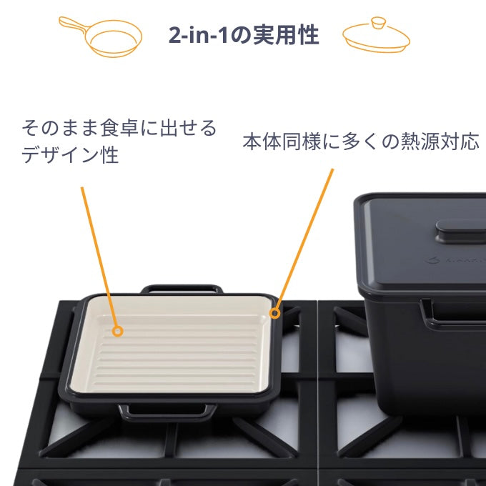 ※COOK-Xは、カセットコンロ/クッキングヒーターや、ガス、IH、電気など幅広い熱源に対応していますので安心してお使いいただけます。(ご自宅で使って、アウトドア先でも使えます)